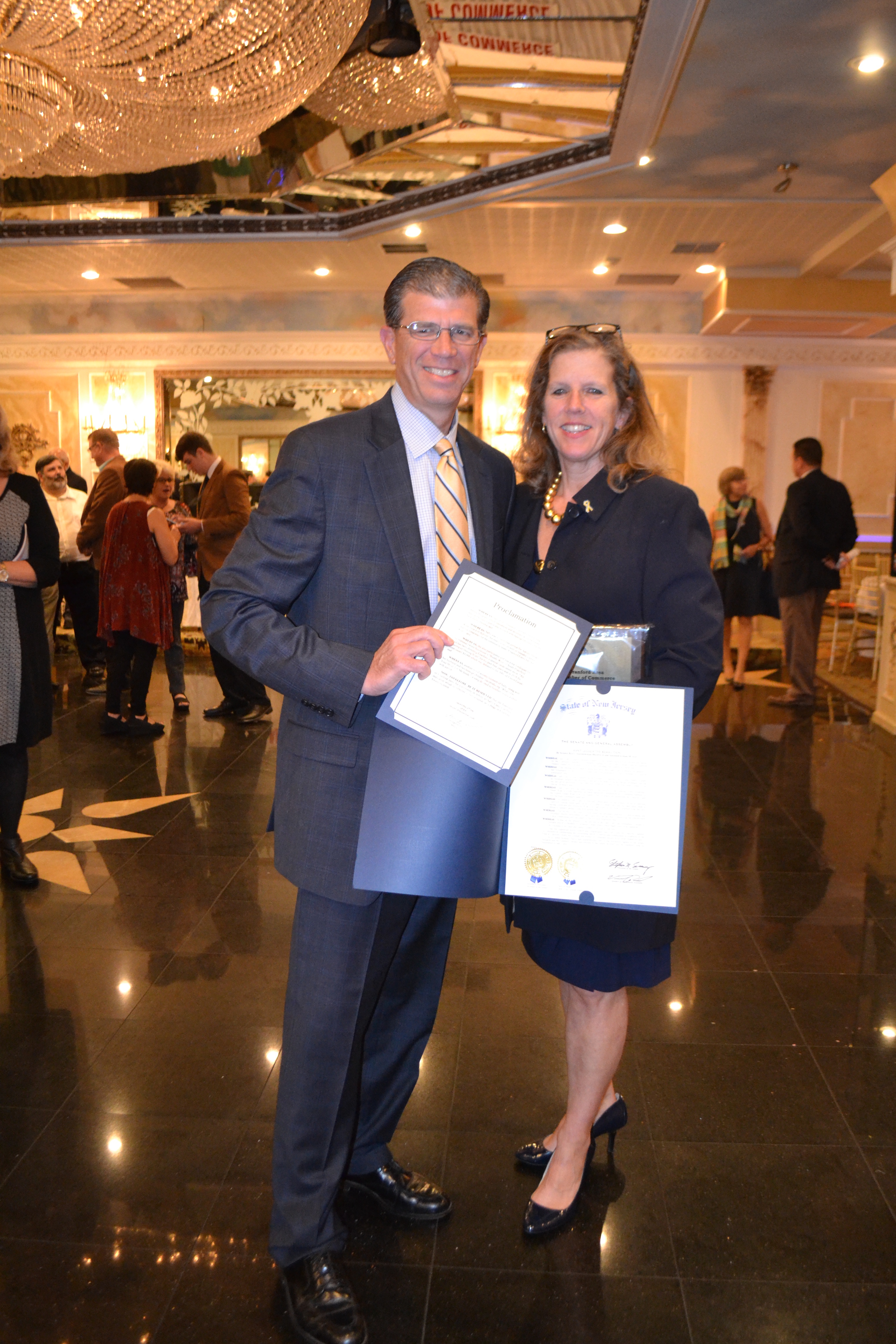 Sally Curci, with husband Mike Curci, received a "Pride of Cranford" Award of Outstanding Merit.