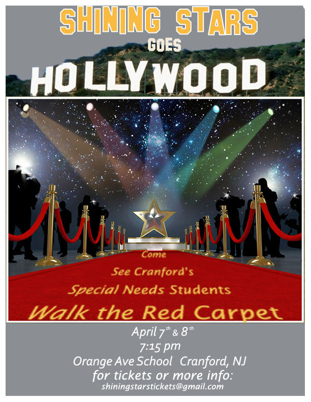 Shining Stars “Goes Hollywood” tickets are now on sale. Come see the talented special needs students of Cranford in their annual talent show on Fri, April 7th or Sat, April 8th at 7:15pm. Please click the link below to order tickets online or email This email address is being protected from spambots. You need JavaScript enabled to view it. for more information.