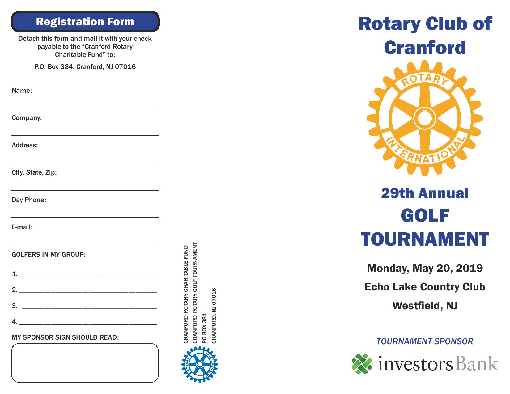 The outing will also benefit the Cranford Rotary Scholarship fund, which provides scholarships to Cranford residents graduating high school based upon their service to the community.